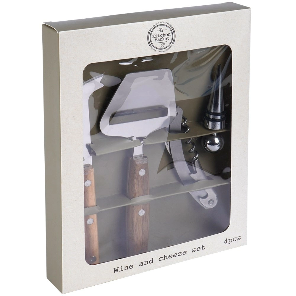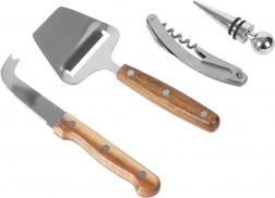 Ovaj univerzalni set dodataka za vino i sireve spaja kvalitetu, funkcionalnost i bezvremenski dizajn. Konobarov nož omogućuje brzo i sigurno otvaranje vina i skidanje krunskih čepova, čep čuva svježinu i aromu otvorenih boca. Nož i rezač omogućuju precizno rezanje sireva od mekih do tvrdih.