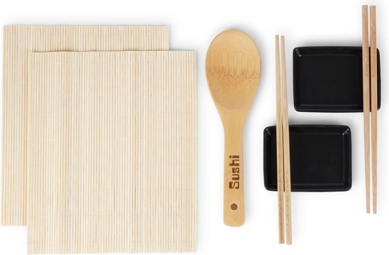 Otkrijte radost kućne pripreme i posluživanja sushija. Ovaj set od 7 dijelova sadrži sve što trebate: dvije elastične bambusne podloge za precizno rolanje, dva para štapića, lopaticu za rižu za nježan rad s rižom i dvije keramičke zdjelice za soja umak, wasabi ili đumbir. Zahvaljujući prirodnim materijalima i promišljenom dizajnu dobit ćete praktičnu i estetsku opremu za svaku sushi večer.