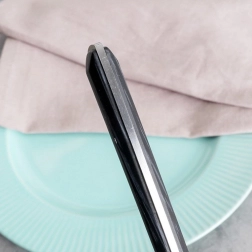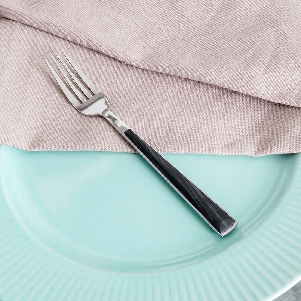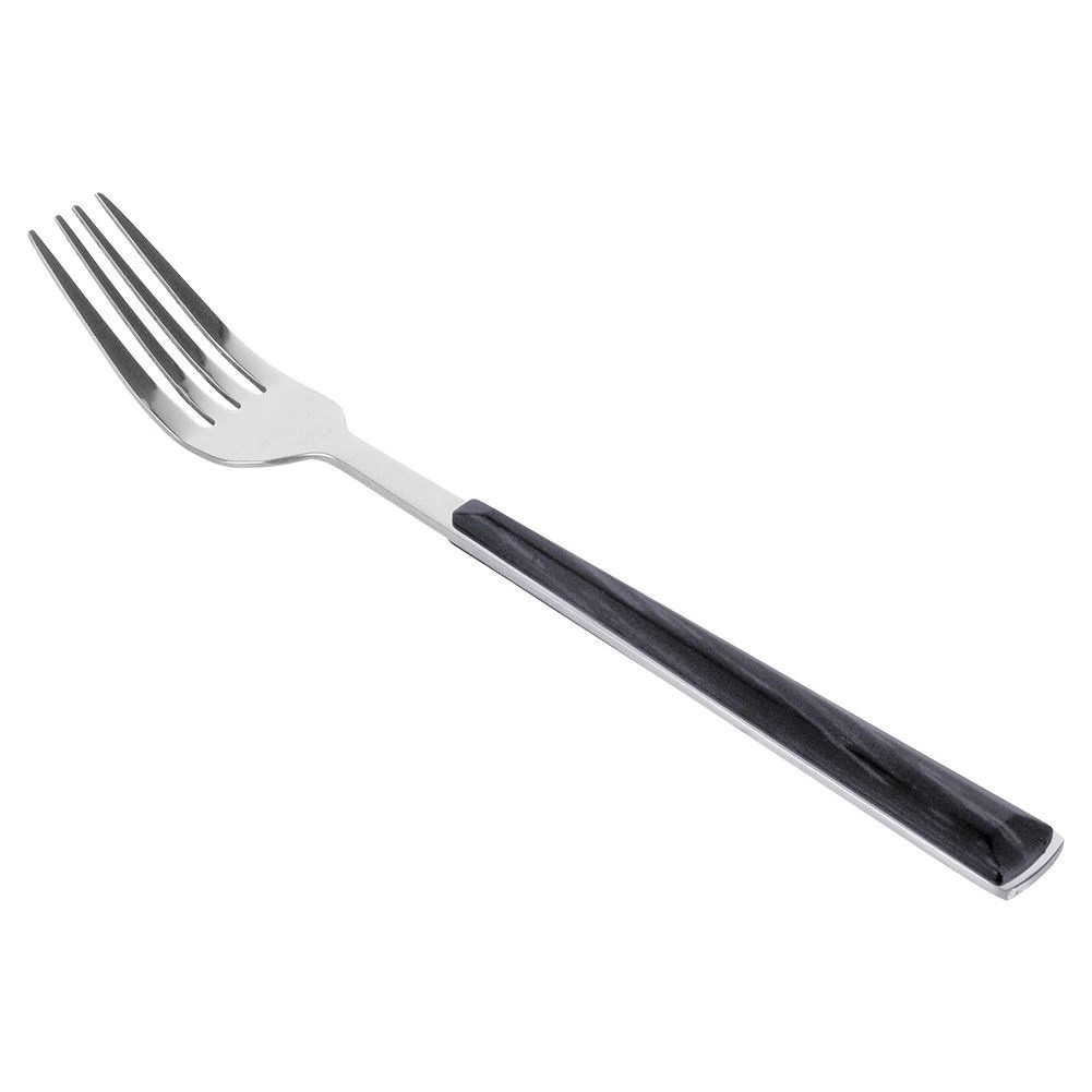 Stilova desertna vilica ARYA ističe se kombinacijom poliranog nehrđajućeg čelika i tamne drške s efektom drva. Zahvaljujući duljini od 18 cm ugodno leži u ruci i savršena je za posluživanje torti, kolača i finih deserata. Minimalistički dizajn lijepo se uklapa u različite tipove postave stola.