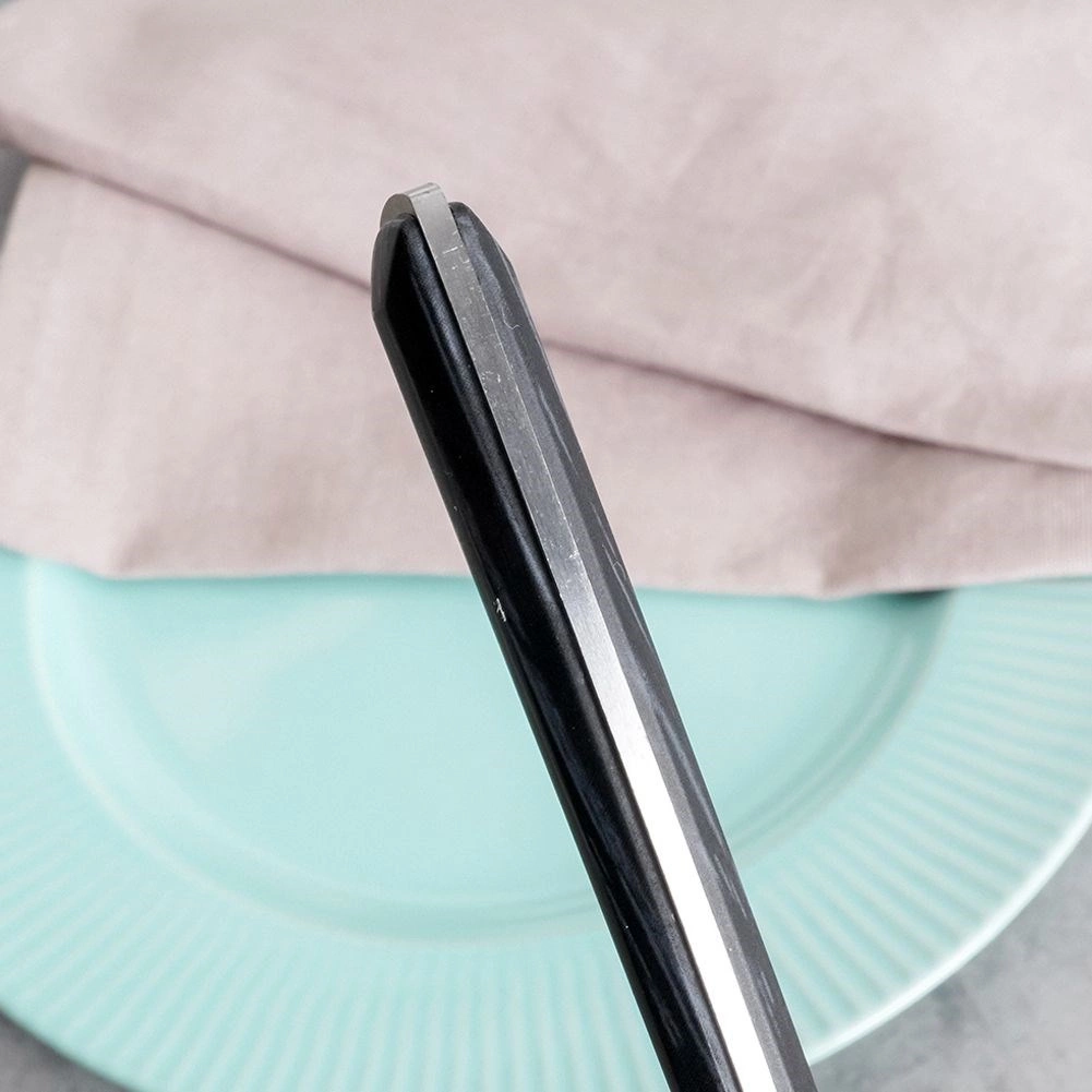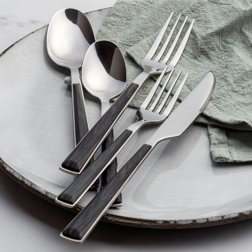 Tamna drška u dekoru drva daje moderan izgled i ugodan hvat koji se odlično slaže s različitim postavkama stola.