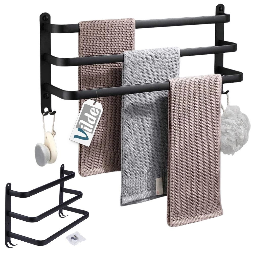 Tri horizontalne šipke omogućuju vješanje više ručnika odjednom kako bi se brže osušili i ostali svježi.