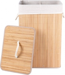 Košara je izrađena od čvrstih bambusovih letvica i dopunjena lanenom podstavom koju je lako izvaditi i oprati. Robusna, a ipak lagana konstrukcija i konopne ručke omogućuju udobno prenošenje i pri većem punjenju.