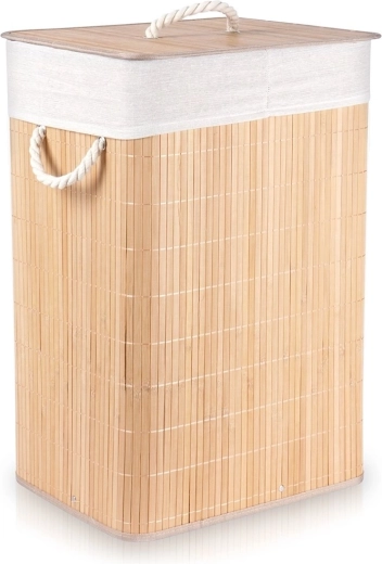 Košara je izrađena od čvrstih bambusovih letvica u prirodnoj bež boji. Kombinira lakoću, stabilnost i elegantan izgled prikladan za svaki interijer.