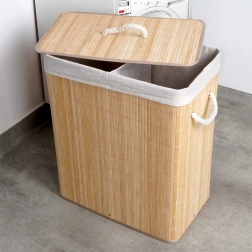 Tekstilni umetak je podijeljen na dvije komore, pa rublje možete lako razvrstati već pri odlaganju. Umetak se dodatno može izvaditi i oprati, što olakšava održavanje. Zahvaljujući bočnim konopastim ručkama košaru ćete udobno prenijeti tamo gdje vam je potrebna.