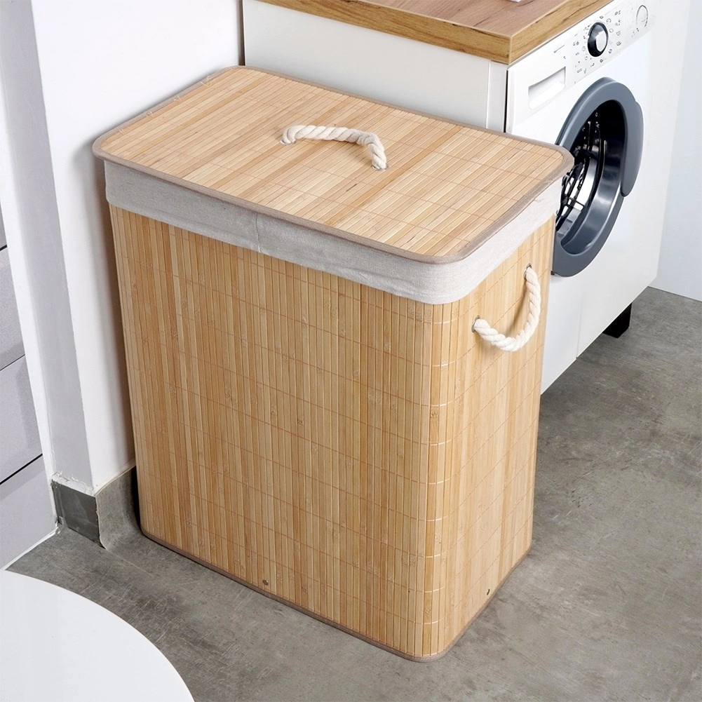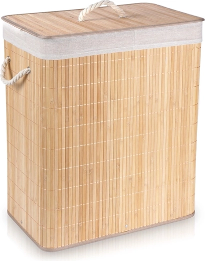 Održavajte dom urednim s prostranom bambusovom košarom za rublje Vilde. Prirodni materijal u bež nijansi i čist dizajn lako se uklapaju u svaki interijer. Stabilna konstrukcija od bambusovih letvica je lagana, a istovremeno izdržljiva, a odvojivi poklopac pomaže zadržati neugodne mirise i održati uredan izgled prostorije.