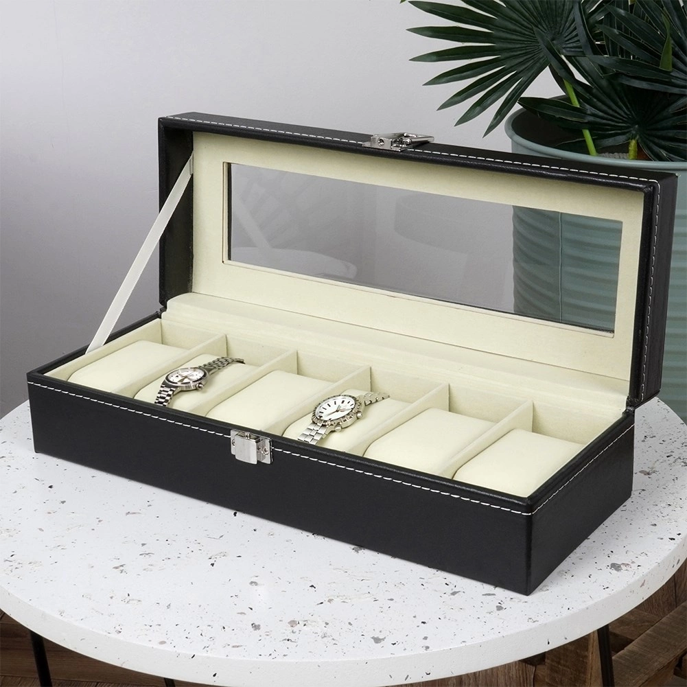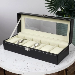 Zahvaljujući šest odvojenih pretinaca, svaki komad ima svoje mjesto. Metalno kopčanje osigurava pouzdano zatvaranje, pa su satovi zaštićeni od prašine, slučajnih udaraca i sitnih ogrebotina. Organizator se izvrsno uklapa u dnevni boravak, spavaću sobu ili garderobu, a odličan je poklon i za žene i za muškarce.