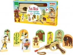 Drveni vestern pištolj s metama VILAC donosi siguran i zabavan oblik natjecanja. Djeca kroz igru razvijaju koordinaciju ruke i oka, uče se koncentrirati i vježbaju strpljenje. Jednostavan mehanizam na gumicu lako se koristi i prikladan je za malu djecu.