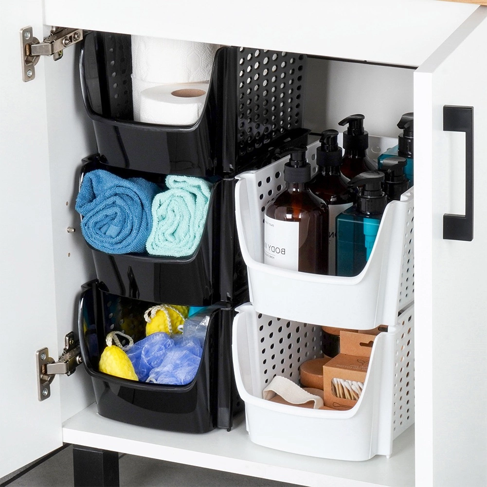 Prikladna za voće, povrće, drogeriju ili uredski pribor. Više košara može se stabilno slagati i štedjeti prostor.