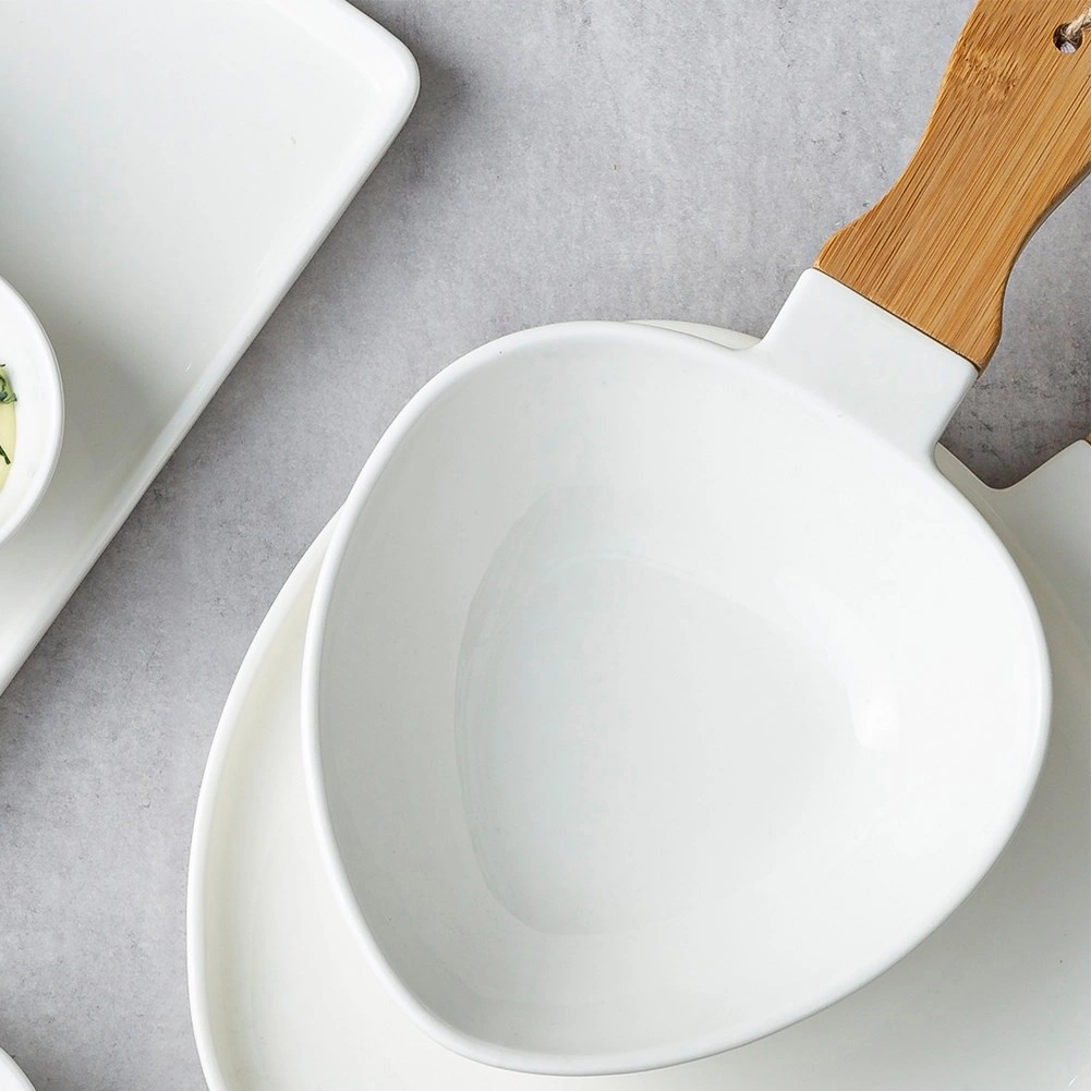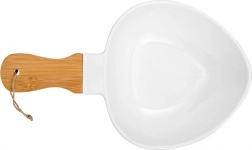 Otkrijte elegantan način posluživanja s porculanskim tanjurom s bambusovom drškom iz kolekcije TERRESTRIAL brenda NAVA. Zahvaljujući udobnoj ručki, prenošenje i posluživanje su sigurni i praktični, dok kombinacija bijelog porculana i prirodnog bambusa stolu daje moderan i bezvremenski izgled.