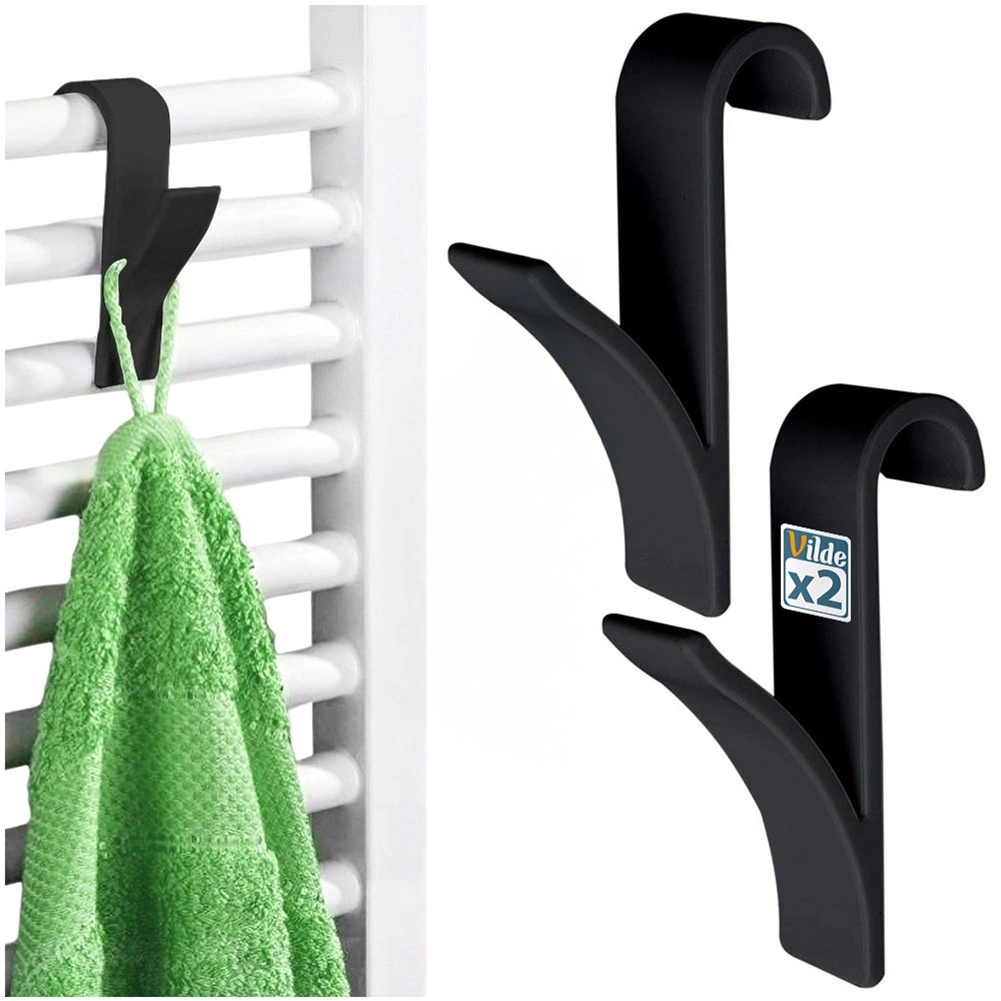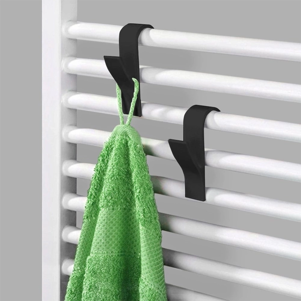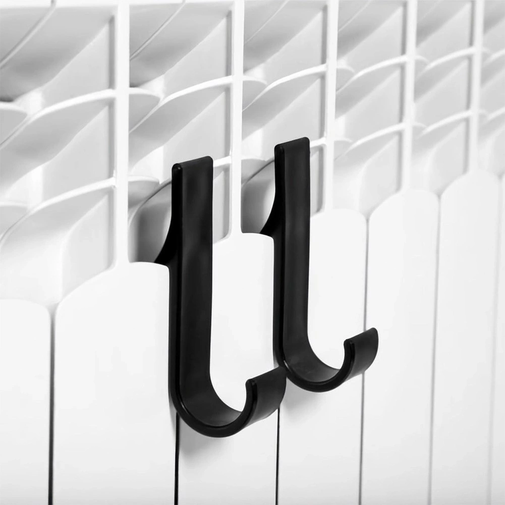 Uživajte u više prostora i bržem sušenju s univerzalnim kukama za radijator. Zahvaljujući pametnoj konstrukciji, lako ih postavite na rebrasti ili pločasti radijator ili objesite na gornji rub vrata ili vratnica ormarića. Izdržljiva izvedba u mat crnoj boji odlično se uklapa u moderne interijere.