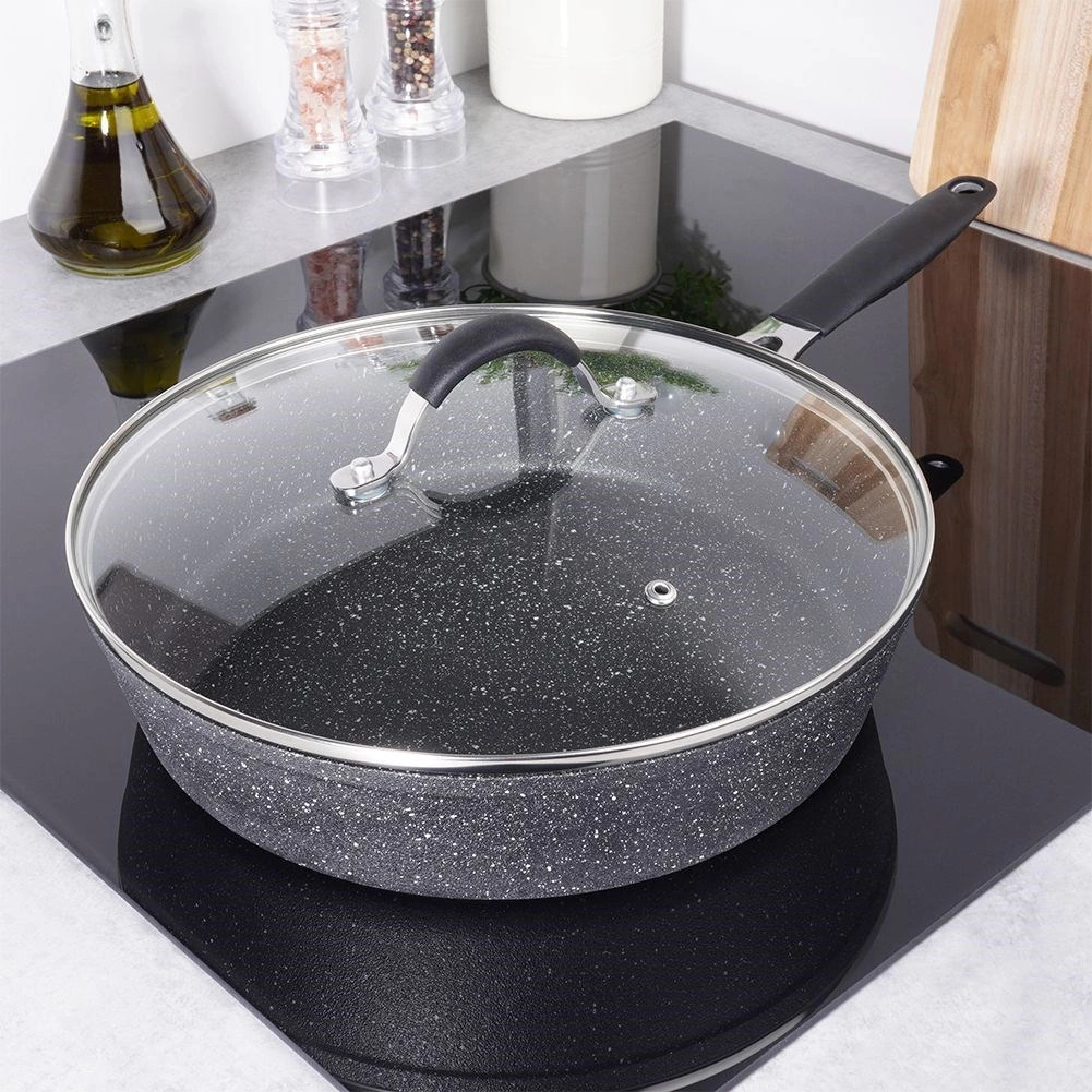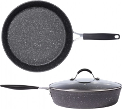 Ova robusna granitna tava idealna je za svakodnevno kuhanje – od prženja i pirjanja preko dinstanja pa sve do reduciranja umaka. Zahvaljujući neljepljivom kamenom premazu pripremit ćete zdrava i ukusna jela s minimalno masnoće, bez lijepljenja i s savršenim zapečenjem.
