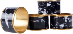 Dodajte svom postavljanju stola izuzetan šarm. Ovi metalni prsteni za salvete sa sjajnim zlatnim obrubom i izražajnim motivom crnog mramora idealni su za svečane večere, obiteljska okupljanja i svakodnevno posluživanje. Višekratno upotrebljivi, izdržljivi i pažljivo izrađeni.