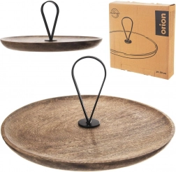 Ova elegantna etažera za posluživanje izrađena je od kvalitetnog mangovog drva koje je prirodno otporno na vlagu i deformacije, neupijajuće je i brzo se suši. Središnja metalna ručka u crnoj boji olakšava rukovanje i daje pladnju moderan industrijski izgled.
