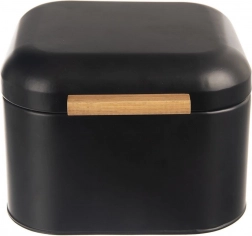 Ova crna metalna kutija za kruh spaja minimalistički izgled s praktičnim funkcijama. Preklopni pokrov s bambuskom ručkom udobno se otvara zahvaljujući paru čvrstih šarki, pa lako dolazite do peciva u bilo koje doba dana. Kompaktna veličina idealna je za manji kruh, nekoliko peciva ili kroasane.