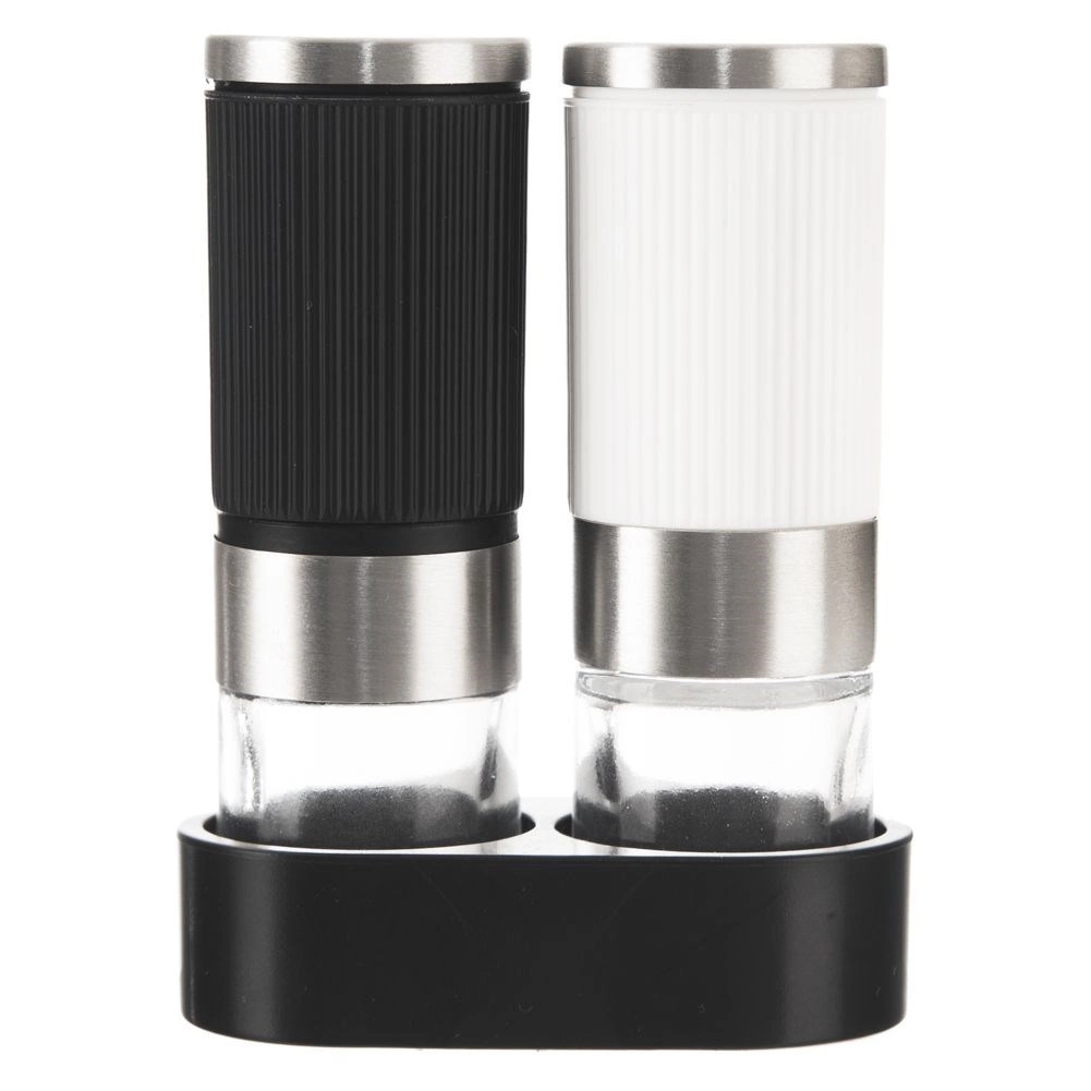 Stilizirani set dvaju ručnih mlinaca za sol i papar sa stabilnim stalkom savršeno pristaje i modernoj i klasičnoj kuhinji. Prozirno staklo omogućuje kontrolu zaliha, inox detalji daju premium izgled, a rebrasto kućište u crnoj i bijeloj boji jamči siguran hvat i mokrom rukom.