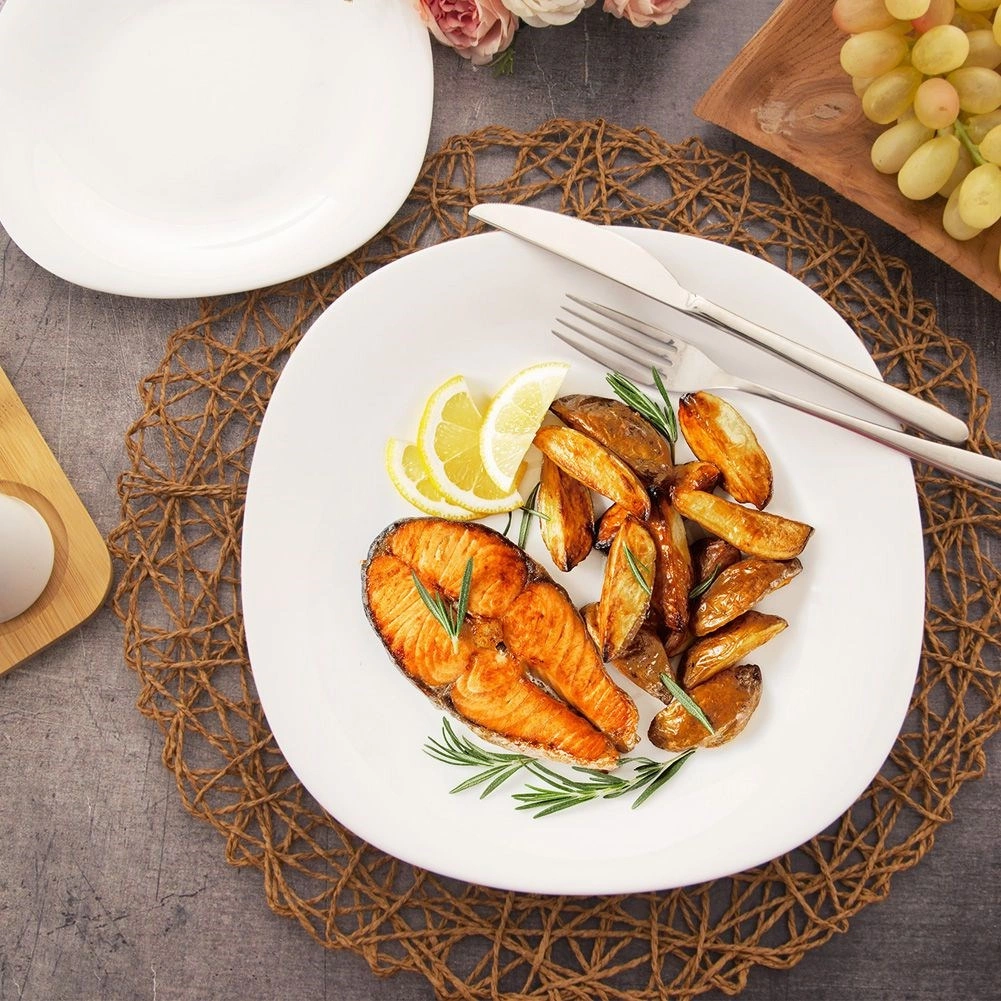Dimenzija 26,5 × 26,5 cm pruža dovoljno mjesta za meso, priloge i salate – poslužujte estetski i udobno.