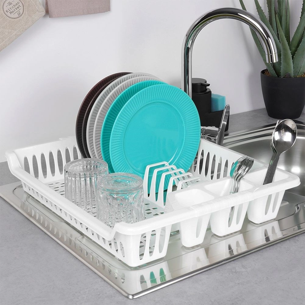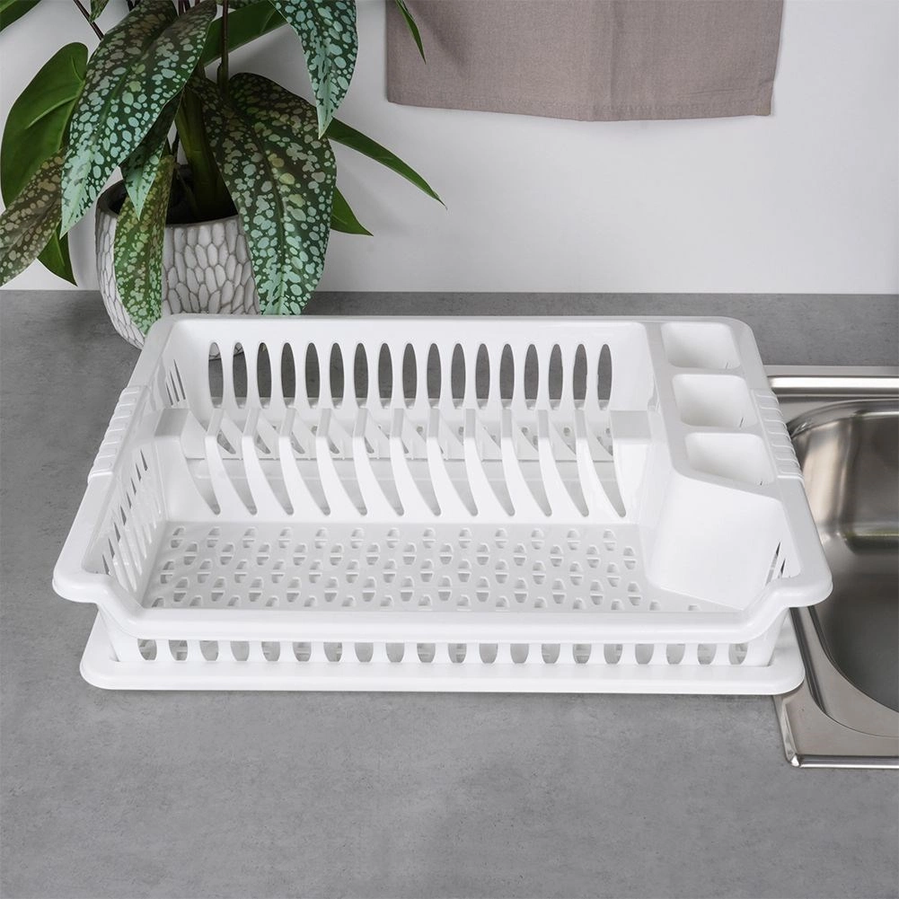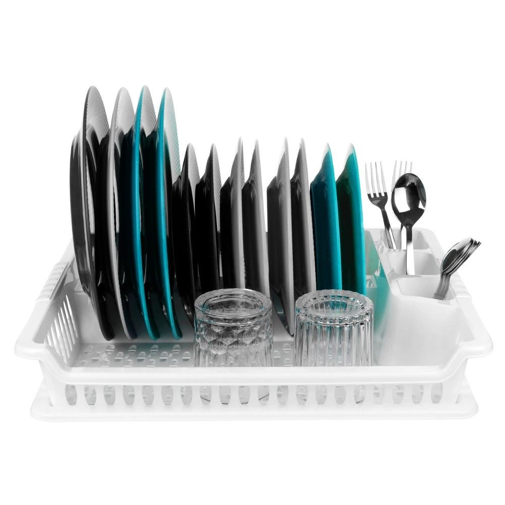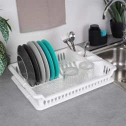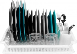 Održavajte red nakon ručnog pranja posuđa s ovim prostranim ocjeđivačem koji nudi prostor za do 12 tanjura, čaše i pribor. Integrirani pretinci i uklonjiva posuda za ocjeđivanje osiguravaju učinkovit odvod vode i suh radni prostor. Minimalistički dizajn u bijeloj boji uklapa se u moderne i klasične kuhinje.