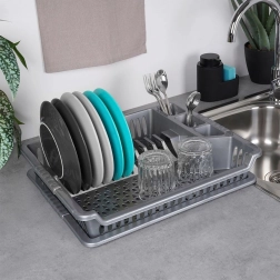 Zahvaljujući univerzalnom, bezvremenski sivom dizajnu odlično se uklapa u svaku kuhinju. Ocjeđivač je jednostavan za čišćenje i prikladan za svakodnevnu upotrebu – idealan pomoćnik za ručno oprane tanjure, zdjele, čaše i pribor za jelo.