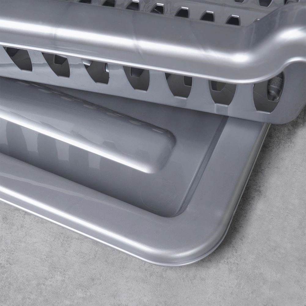 Održite kuhinju čistom i organiziranom s ocjeđivačem koji nudi mjesto za do 12 tanjura, šalice i pribor. Perforirano dno i odvojivi pladanj učinkovito odvode vodu, pa radna površina ostaje suha i bez mrlja. Materijal bez BPA siguran je za kontakt s posuđem te ujedno iznimno izdržljiv i lagan.
