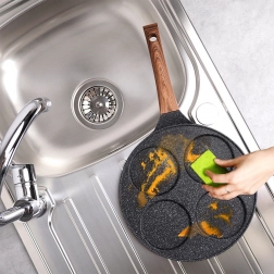 Četiri plitke komorice osiguravaju ujednačene porcije bez razlijevanja tijesta ili bjelanjka. Idealno za doručak i brze užine.