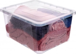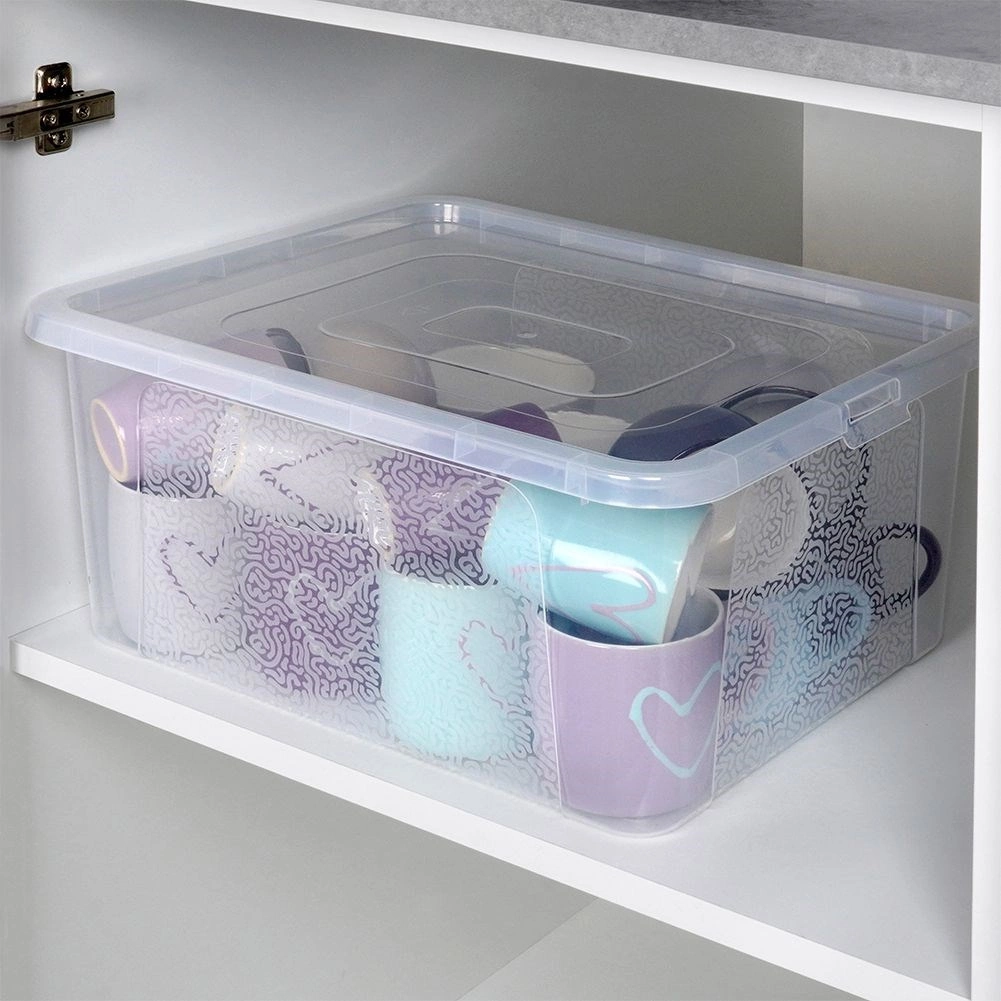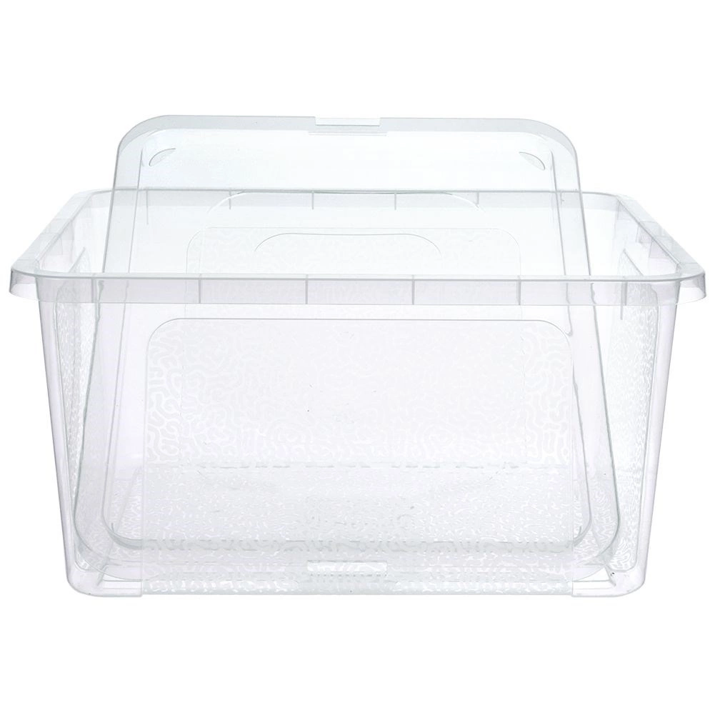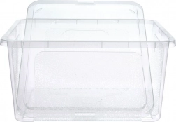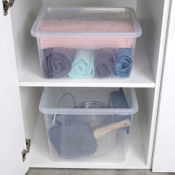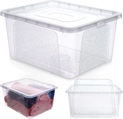 Svestrana kutija za pohranu s poklopcem pomaže pregledno organizirati tekstil, igračke, knjige, alat i sezonsku opremu. Prozirna izvedba omogućuje brzu provjeru sadržaja bez otvaranja, a poklopac na lagani „klik” sigurno zatvara i štiti sve unutra. Zaobljeni rubovi povećavaju sigurnost pri rukovanju, a mogućnost slaganja štedi prostor na policama i u ormarima.