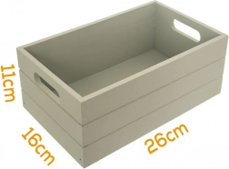 Praktična i stilska drvena kutija dimenzija 26 × 16 × 11 cm za pregledno odlaganje sitnica u domu i uredu. Izrađena je od izdržljivog drva, ima pastelno svijetlozelenu površinu, otvoren vrh za lak pristup i bočne ručke za udobno prenošenje. Odlično služi za kozmetiku, uredski pribor, namirnice, začine, voće i povrće te kao dekorativni element u svakom interijeru.