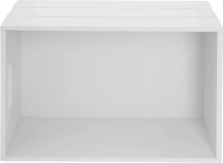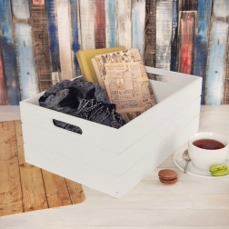 Univerzalna drvena kutija u bezvremenskoj bijeloj boji pomaže održati red u svakoj prostoriji. Izrađena je od izdržljivog drva, a zahvaljujući ovalnim izrezima na bokovima lako se prenosi. Minimalistički izgled pristaje modernim i klasičnim interijerima.