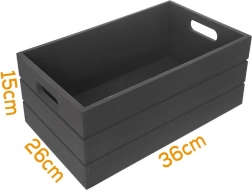 Otkrijte praktično rješenje za organizaciju doma. Drvena spremna kutija s otvorenim vrhom i integriranim ručkama nudi brz pristup sadržaju, lako prenošenje i stabilnu drvenu konstrukciju dugog vijeka. U minimalističkom crnom dizajnu uklapa se u klasične i moderne interijere.