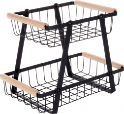Košara je izvrsna ne samo za namirnice, već i kao univerzalni organizator za peciva, posude, začine ili uredski pribor. Dvoslojno rješenje štedi prostor na radnoj plohi i održava stvari pregledno organiziranima. Bezvremenska kombinacija mat crne i drva uklapa se u moderne i klasične interijere.