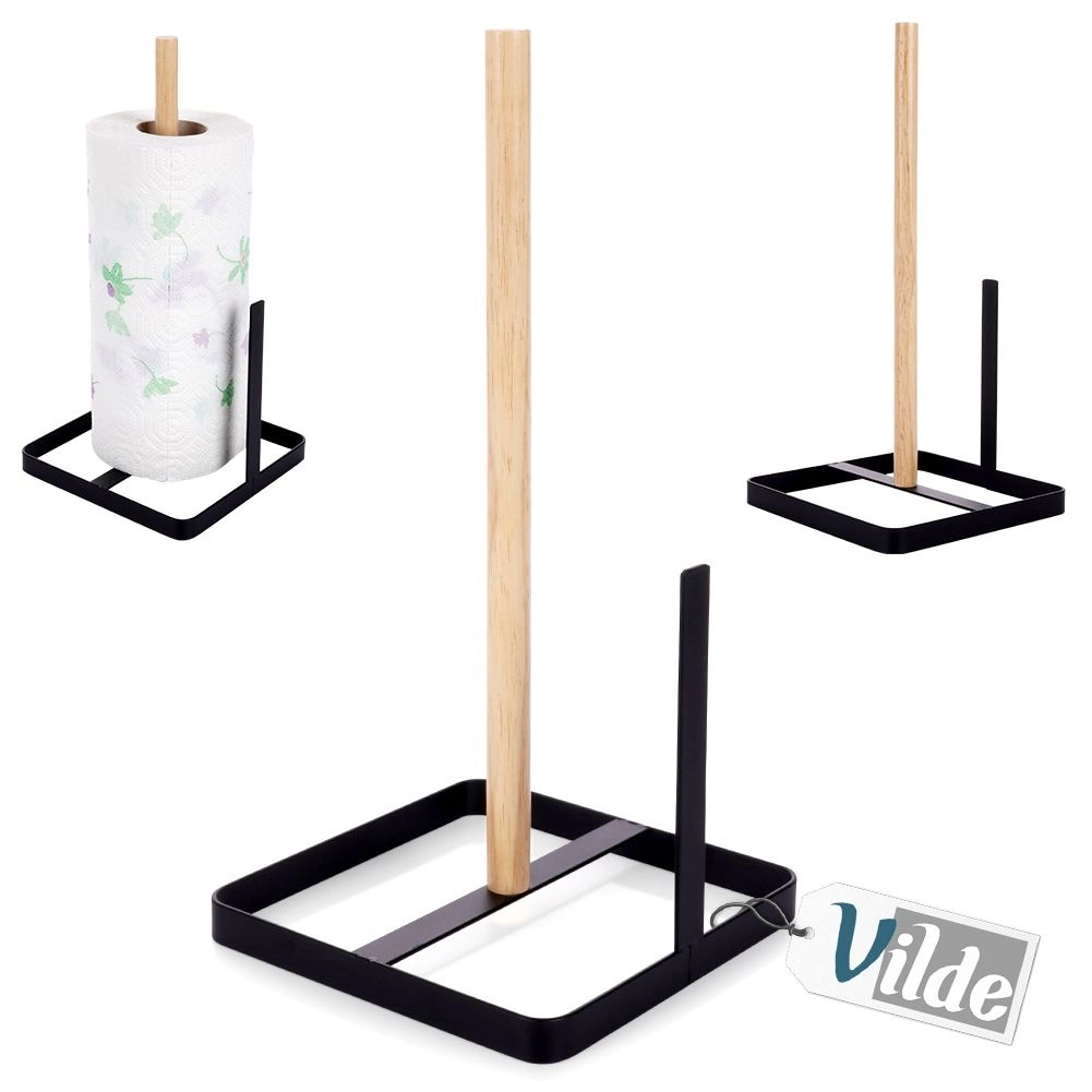 Elegantni i izdržljivi stalak za papirnate ručnike olakšava svakodnevno kuhanje i čišćenje. Masivni drveni stup i crna metalna baza u mat izvedbi osiguravaju čvrstoću, stabilnost i dugotrajnost. Zahvaljujući pametnom obliku, trganje ručnika je brzo i udobno bez odmotavanja cijele role.