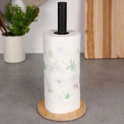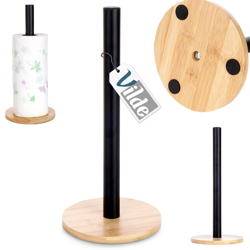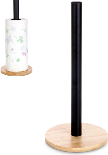 Ovaj stalak za papirnate ručnike olakšava svakodnevno čišćenje i kuhanje. Spoj mat crnog čelika i bambusova drva osigurava izdržljivost, stabilnost i bezvremenski izgled koji pristaje klasičnim i modernim interijerima. Univerzalna dimenzija odgovara standardnim i duljim rolama te omogućuje brzo, udobno trganje pojedinačnih listova.