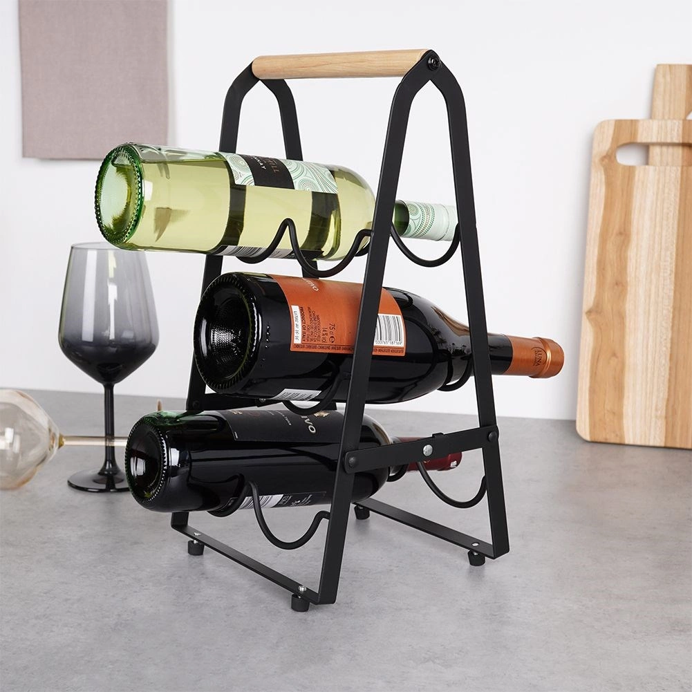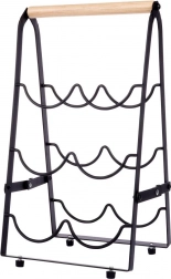 Ovaj dizajnerski stalak za vino u loft stilu kombinira mat crni metal s prirodnim drvom, pa se izvrsno uklapa u moderne interijere. Položeno spremanje boca podupire pravilno skladištenje – čepovi ostaju vlažni, a vino zadržava kvalitetu. Zahvaljujući praktičnoj ručki lako ga prenosite i postavljate na kuhinjski pult, komodu ili barski šank.