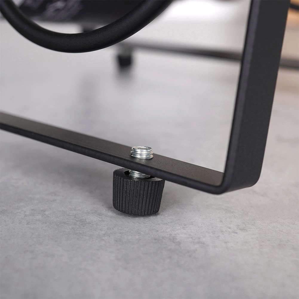 Čvrst čelični okvir s valovitim držačima sigurno fiksira boce i štiti ih od pomicanja. Protuklizne nožice osiguravaju stabilnost na radnoj plohi i polici.