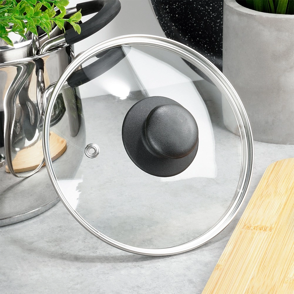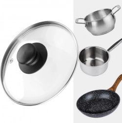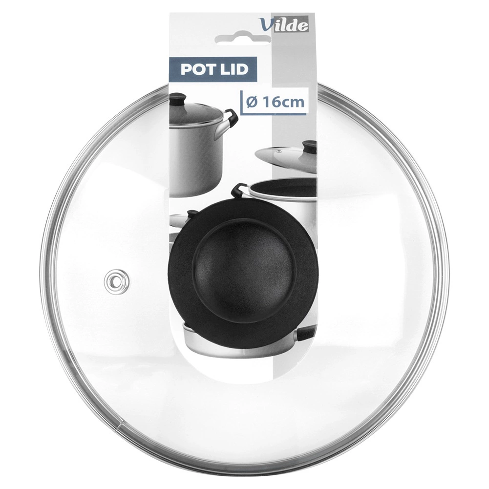 Praktični stakleni poklopac idealan je dodatak za lonce, tave i rajnglice promjera 16 cm. Izrađen od vatrostalnog, prozirnog stakla s čeličnim obručem u elegantnoj srebrnoj boji i izdržljivom crnom ručkom. Blago ispupčen oblik potiče bolju cirkulaciju vrućeg zraka i održavanje temperature pripremanih jela.