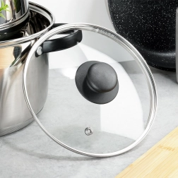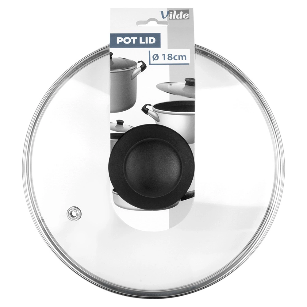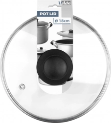 Stakleni poklopac 18 cm praktičan je dodatak za lonce, tave i kaserole istog promjera. Izrađen je od vatrootpornog, prozirnog stakla s rubom od nehrđajućeg čelika i izdržljivim plastičnim gumbom u crnoj boji. Prozirna konstrukcija omogućuje kontrolu kuhanja bez podizanja poklopca, čime štedi energiju i vrijeme.