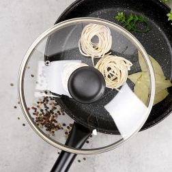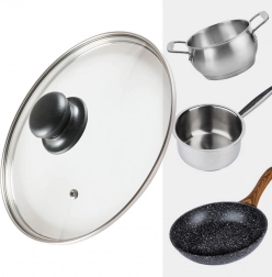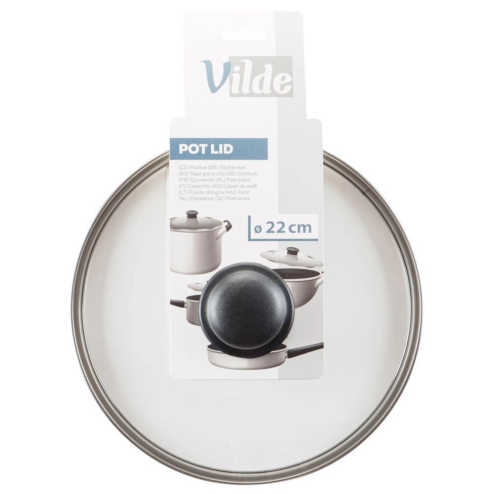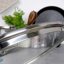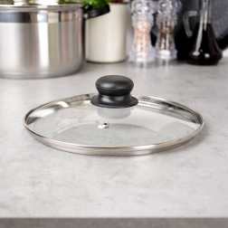 Praktični stakleni poklop odličan je dodatak posuđu promjera 22 cm. Vatrootporno, prozirno staklo s inox obrubom i izdržljivom plastičnom ručkom u crnoj boji osigurava dug vijek trajanja i sigurnu uporabu. Poklop je prikladan za perilicu posuđa i otporan na temperature do 200 °C.
