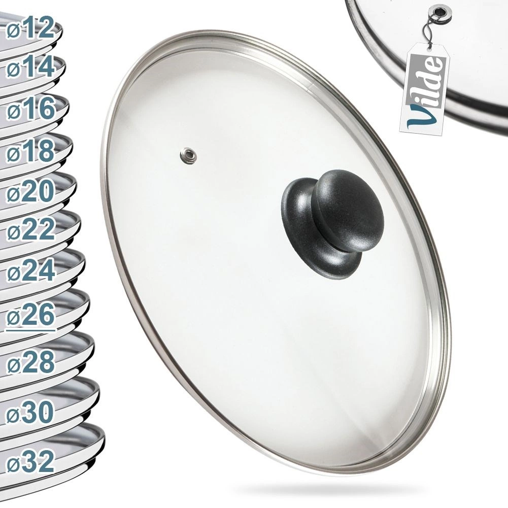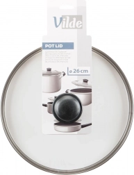 Stakleni poklop VILDE 26 cm pouzdan je dodatak za lonce, tave i kaserole istog promjera. Izdržljivo, prozirno staklo omogućuje kontrolu pripreme u stvarnom vremenu, dok nehrđajući rub osigurava čvrstoću, dug vijek trajanja i stabilno naleganje na posuđe.