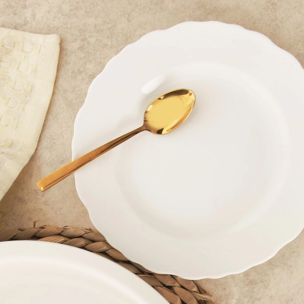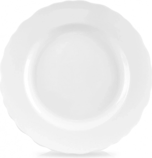 Univerzalni desertni tanjur iz kolekcije Mona oduševljava čistom bijelom bojom i dekorativnim valovitim rubom. Praktičan je za svakodnevnu upotrebu i svečane prilike – savršen za torte, deserte, kanapee te manje porcije doručka ili večere.