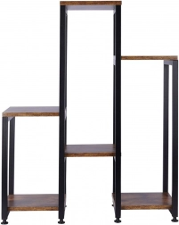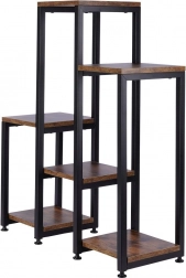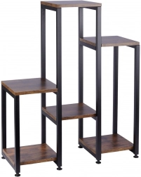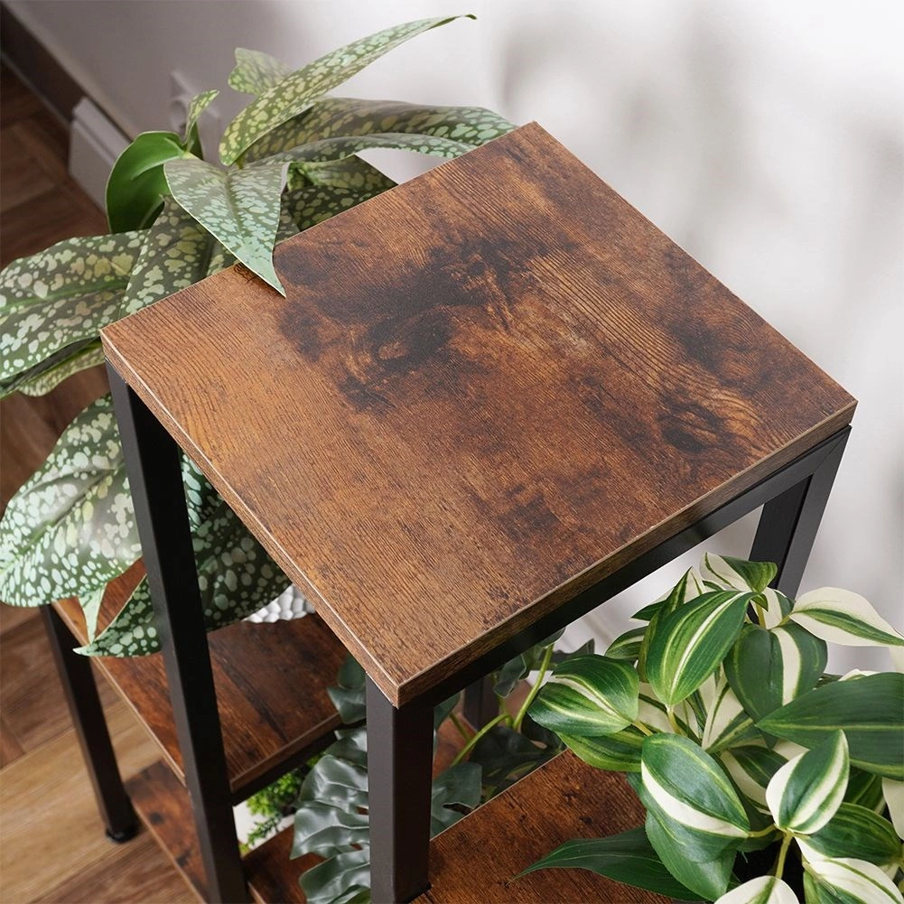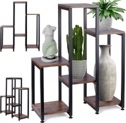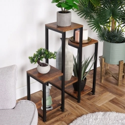 Dodajte karakter svom interijeru višerazinskim stalkom za biljke koji kombinira crni metal i rustikalni drveni dekor. Otvorena konstrukcija štedi prostor, poboljšava protok svjetla do biljaka i omogućuje fleksibilno aranžiranje zelenila i dekoracija.