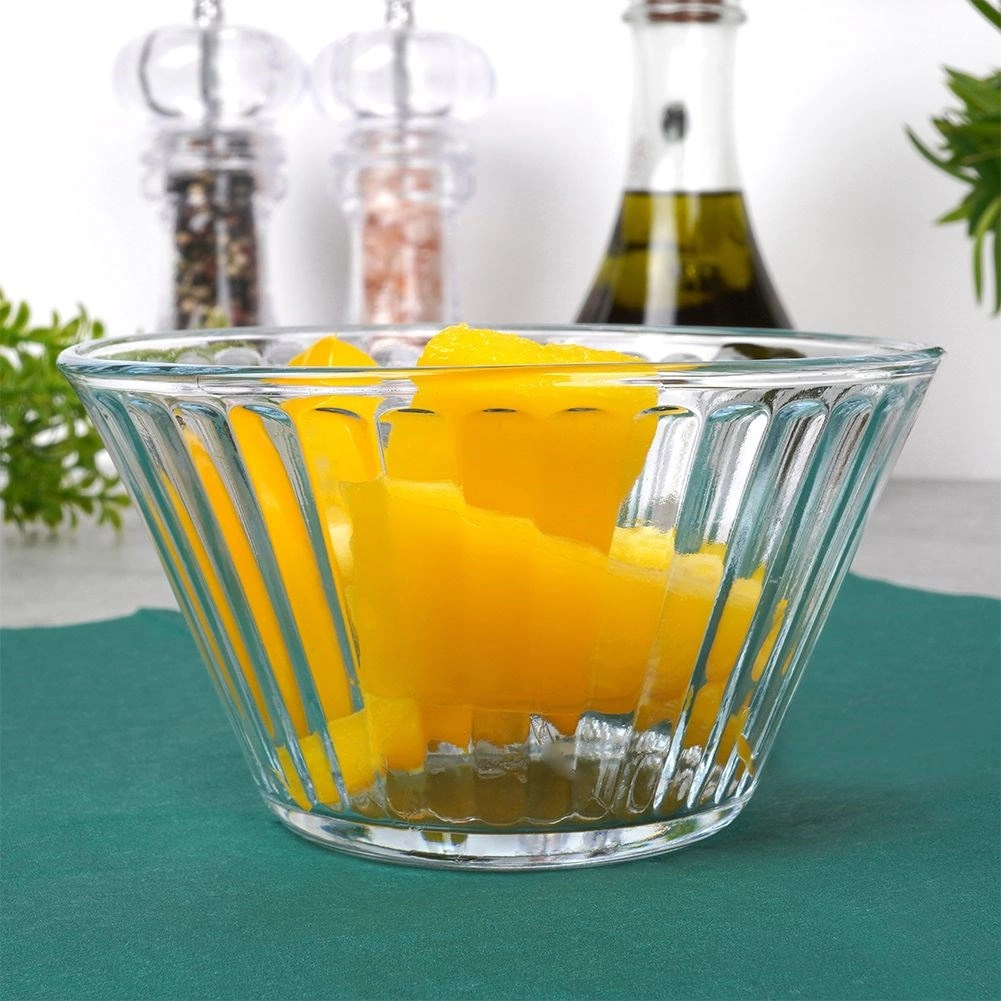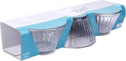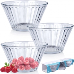 Set od tri univerzalne staklene zdjelice donosi idealan spoj praktičnosti i stila. Prozirno staklo s vertikalnim rebrima daje posluživanje elegantan izgled, a pritom omogućuje potpunu kontrolu nad sadržajem. Prikladne su za hladna i topla jela.