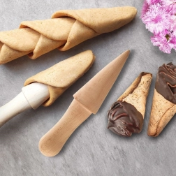 Ova drvena forma za kornete od bukovine ima ergonomski konusni oblik koji olakšava ravnomjerno motanje tijesta i pečenje u pećnici. Višekratno je upotrebljiva, otporna na oštećenja i uz pravilnu njegu trajat će vam dugi niz godina.