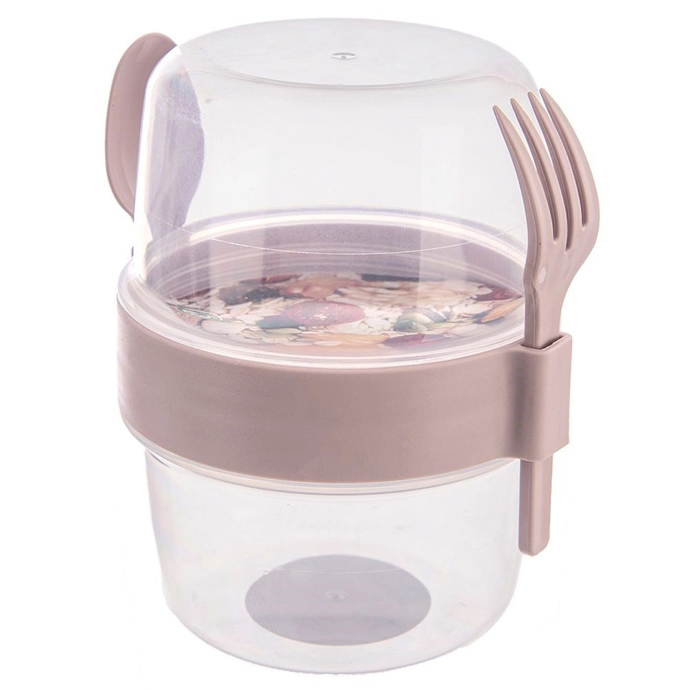 Čaša je izrađena od kvalitetne, izdržljive plastike bez BPA, podnosi pranje u perilici, zamrzavanje i grijanje u mikrovalnoj pećnici bez poklopca. Brtveni poklopac sprječava curenje, a zahvaljujući praktičnom držaču žličica i vilica uvijek su pri ruci. Kompaktne dimenzije stanu u većinu torbi, ruksaka i lunch boxova – savršen suputnik na putu.