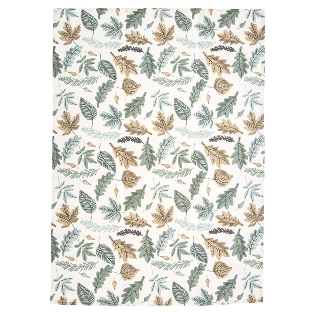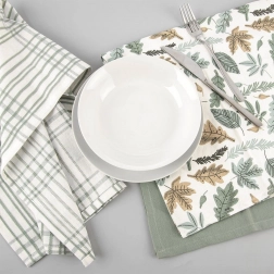 Kombinacija lisnatog motiva, zelene karirane krpe i jednobojne krpe daje kuhinji prirodan dojam i lako se kombinira s dodacima.