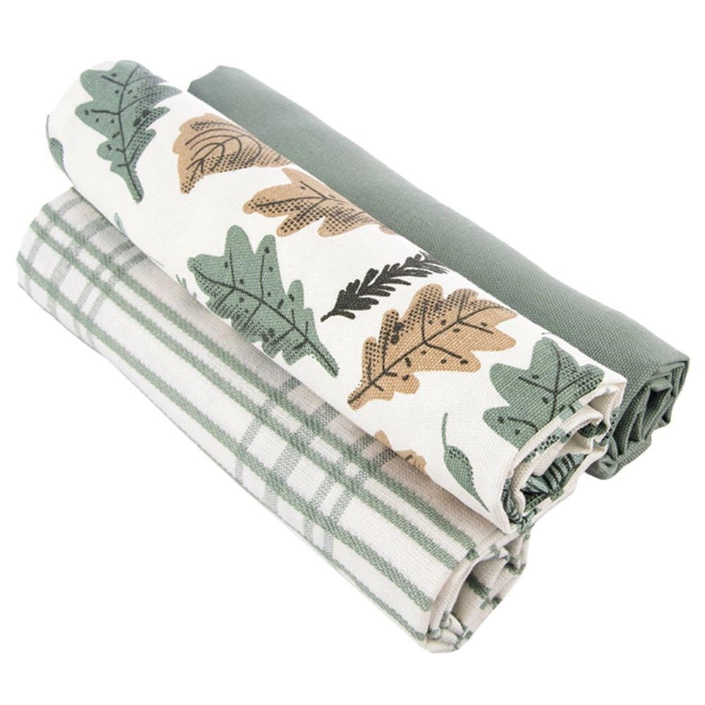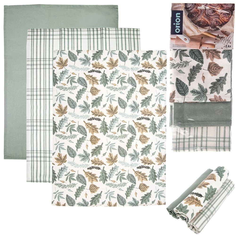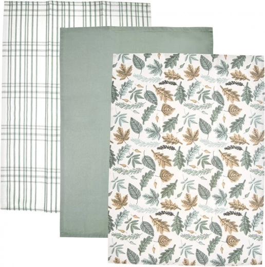 Elegantni set od 3 pamučne kuhinjske krpe idealan je za svakodnevnu uporabu. Ističu se izvrsnom upojnošću, čvrstom tkaninom i univerzalnom primjenom – za brisanje posuđa, ruku ili kao stilska tekstilna dekoracija te podmetači za stol. Tri različita uzorka u prirodnim tonovima lako ćete uskladiti s modernim i tradicionalnim kuhinjama.
