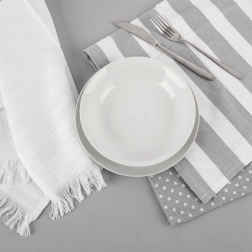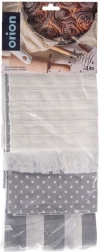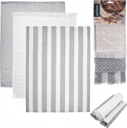 Set od 3 kvalitetne pamučne krpe u modernim uzorcima – prugice, točkice i potpuno bijela s resicama – savršeno pristaje svakoj kuhinji. Zahvaljujući 100% pamuku izvrsno upijaju i ugodne su na dodir, a pritom ostaju čvrste i izdržljive za svakodnevnu upotrebu.