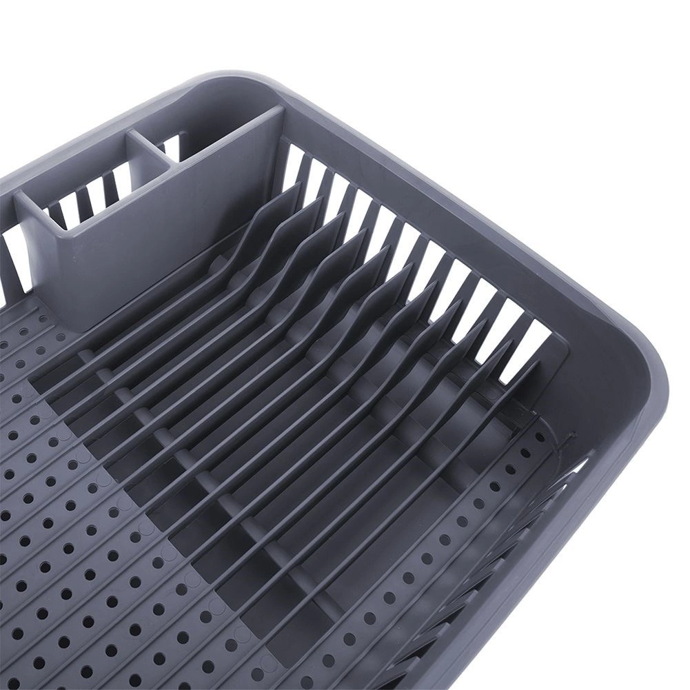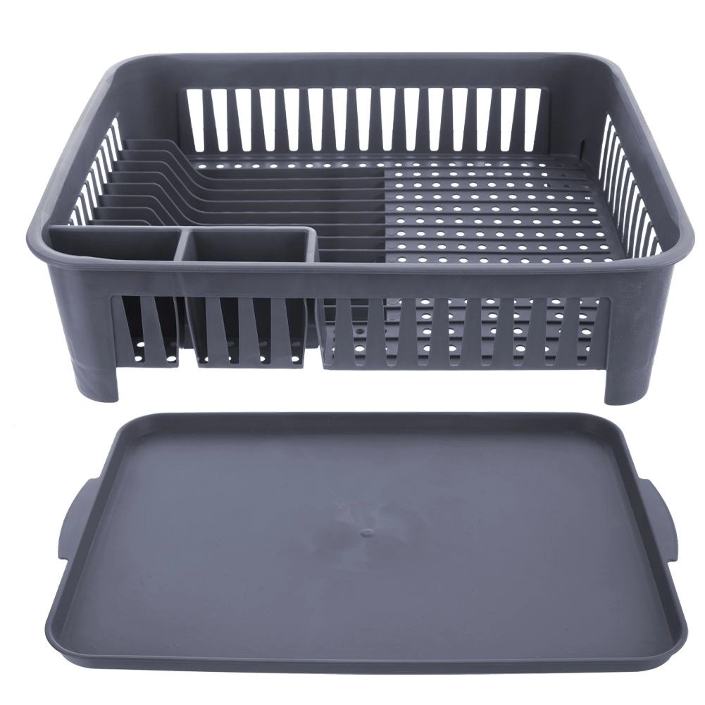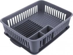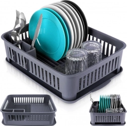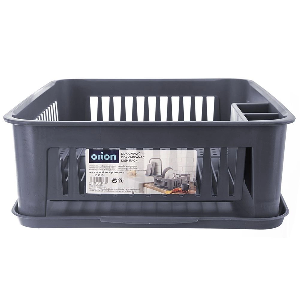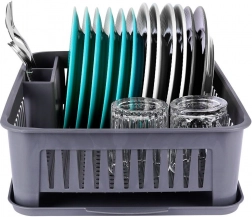 Održavajte svoju kuhinju čistom i organiziranom. Ovaj sivi ocjeđivač posuđa izrađen je od kvalitetne, izdržljive plastike, a zahvaljujući kompaktnim dimenzijama pristaje većini kuhinjskih ploha. Izvadiva ocjeđivačka posuda hvata vodu i štiti radnu plohu, dok promišljen raspored omogućuje brzo i higijensko sušenje posuđa.