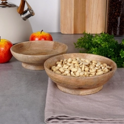 Otkrijte čar prirodnih materijala s ovim setom od 2 plitke zdjele od mangovog drva. Savršene su za posluživanje salata, orašastih plodova, voća, priloga i omiljenih bowlova. Mangovo drvo cijenjeno je zbog svoje otpornosti na vlagu i deformacije, brzo se suši i ne upija mirise, što ga čini odličnim za svakodnevnu upotrebu.