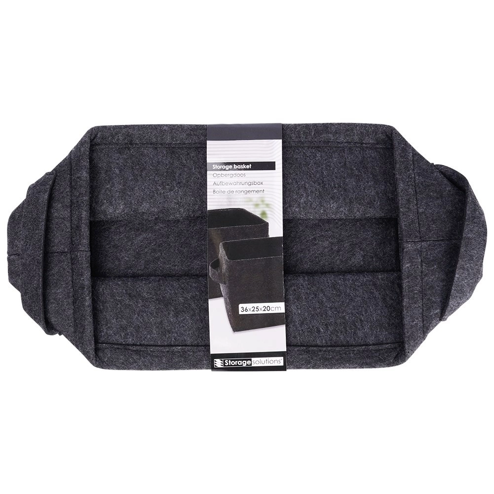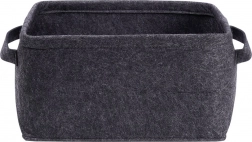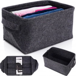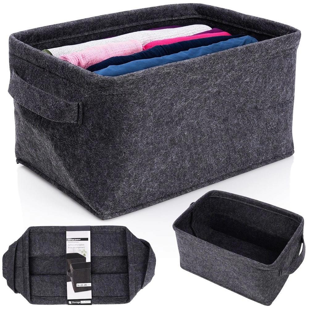 Ova sklopiva filc košara dimenzija 36 × 27 × 20 cm odličan je izbor za pregledno odlaganje tekstila, igračaka, dodataka i uredskog pribora. Zahvaljujući čvrstoj i debeloj filc tkanini zadržava oblik, a pritom je lagana i lako prenosiva.