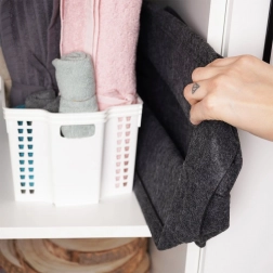 Moderan, čist izgled u crnoj boji pristaje dnevnoj sobi, spavaćoj sobi, dječjoj sobi i kupaonici. Sklopivo izvedenje omogućuje da košaru u trenu složite ravno i uštedite prostor kada nije potrebna.
