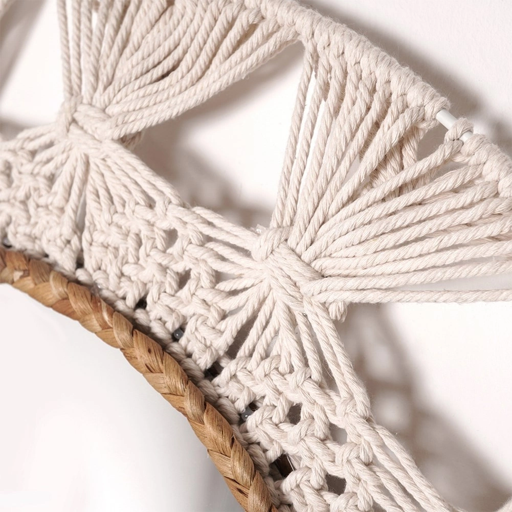 Ovo dizajnersko ogledalo odličan je izbor za dnevni boravak, hodnik i spavaću sobu. Kombinacija prirodnih materijala i ručno rađene pletenine stvara efektan okvir koji će postati upečatljiv element uređenja u boho, rustikalnim i modernim interijerima.